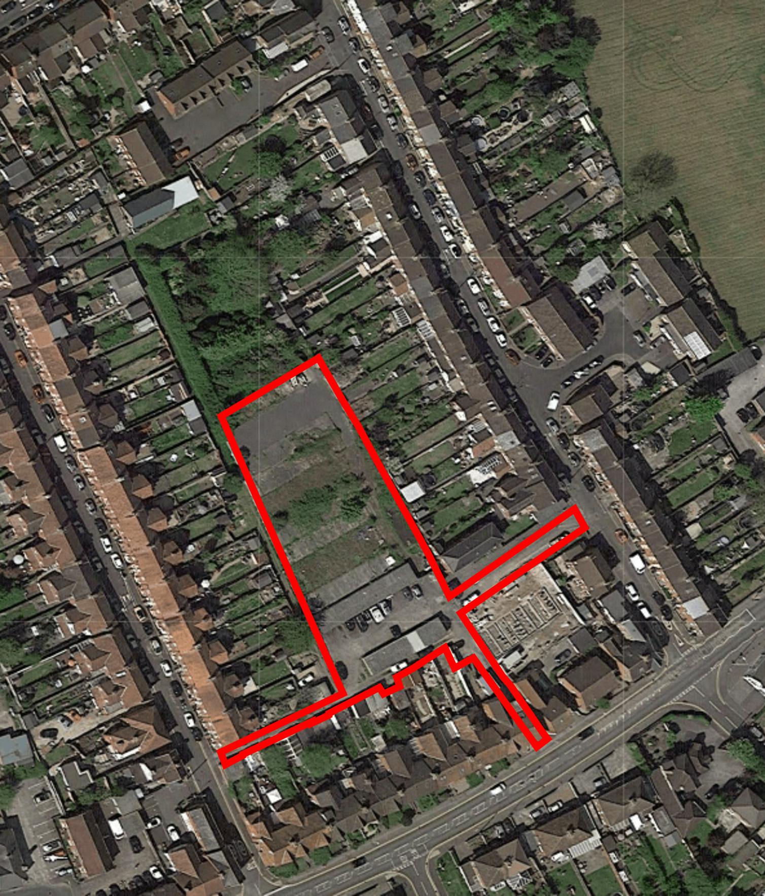 The site is brownfield and broadly level, sloping gently from north to south. The site was formerly occupied by garages, backing onto three lines of Victorian terraces to the east, south, and west. To the north is a continuation of the space between terraces (which benefits from vehicular access over the site). The northern parcel includes mature vegetation and extends up to a hall included within its northern boundary. The gross area totals 0.86 acres (0.35 ha). Full rights of vehicular access are achievable from the eastern access. There are multiple access points for pedestrian access, and servicing for the scheme can be achieved using the eastern or southern routes onto Victoria or Lyde Road.