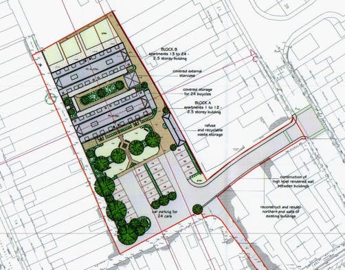 A well-located residential development site with detailed planning permission for 24 open market 2 bed apartments.