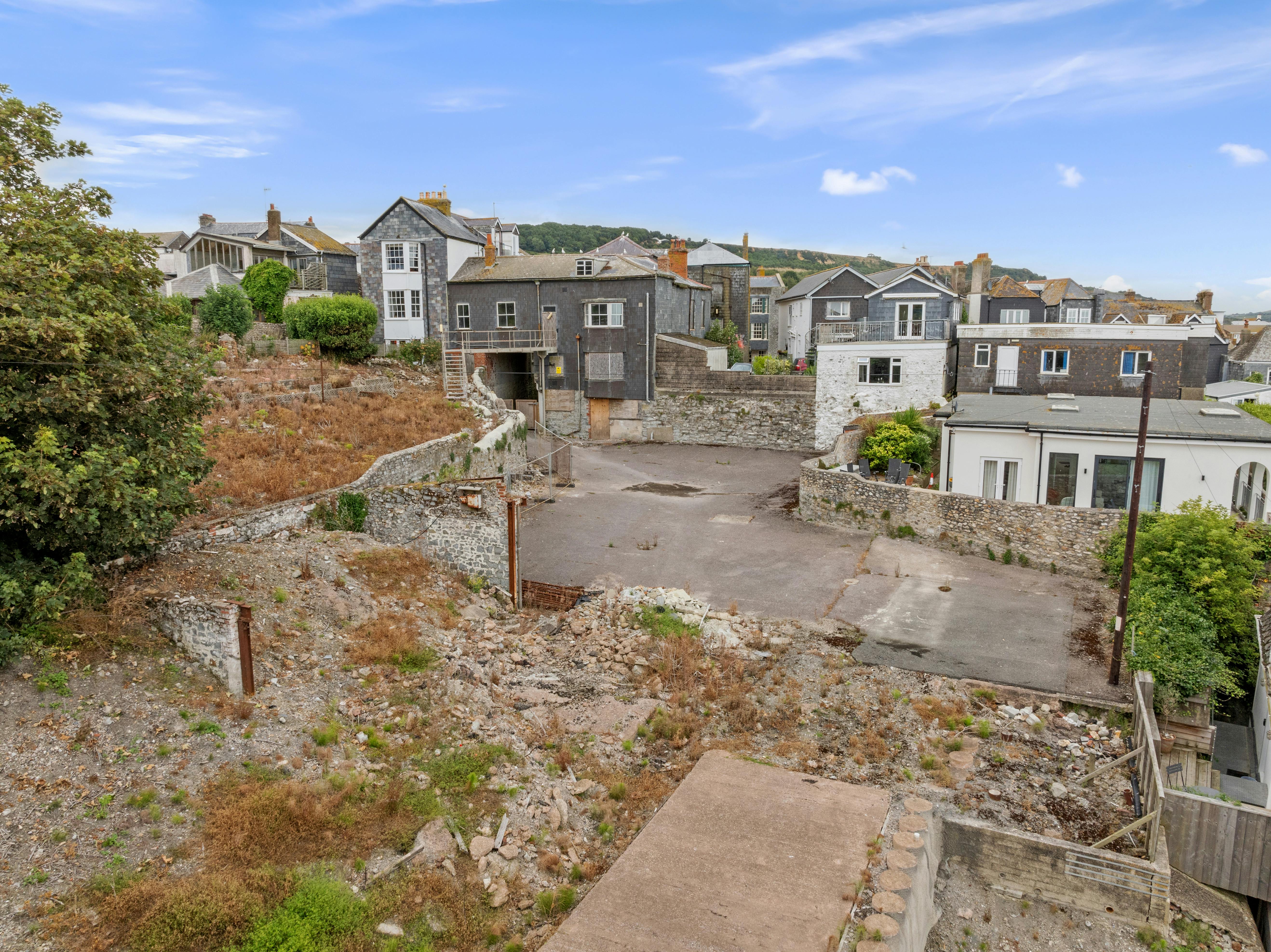 The property comprises a Grade 2 Listed primarily three storey building fronting Broad Street, originally believed to date from the 1800’s with later additions at the rear. The property has remained vacant for a number of years whilst planning and listed building approvals were sought for its redevelopment. Consents were granted by West Dorset District Council (now Dorset Council), and subsequently implemented under application references WD/D/14/002879 and WD/D/14/002880 for a scheme which comprised 2 shops on the ground floor of the main building, demolition of the rear section, and the provision of 9 residential units together with a substantial new build restaurant, bar and 12 letting rooms on the rear garden area. The work has been implemented to preserve the planning consents obtained.